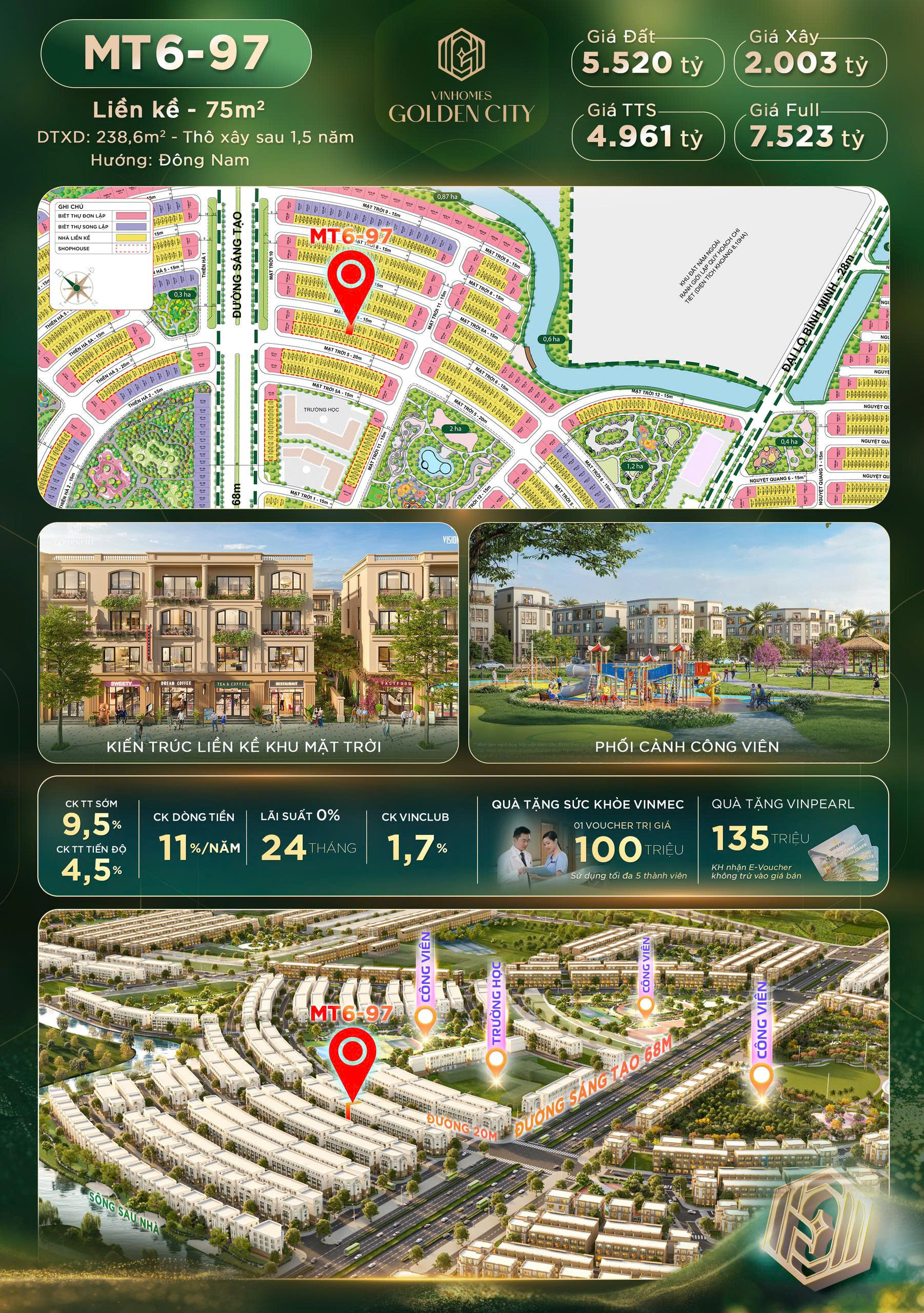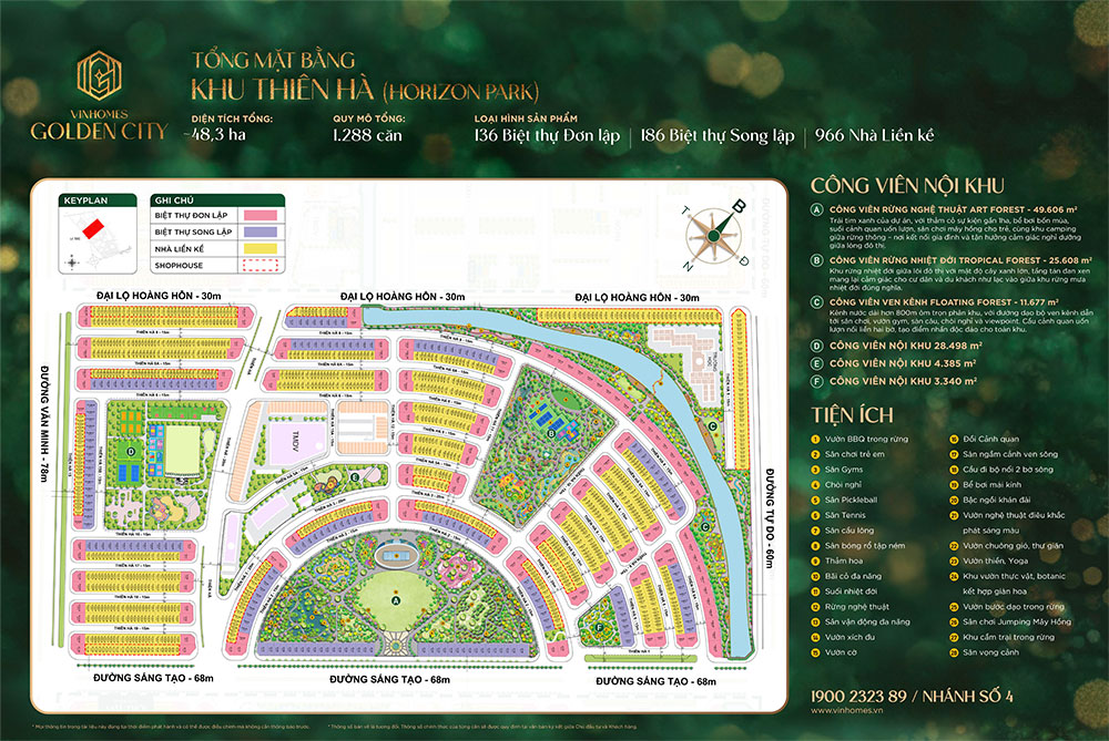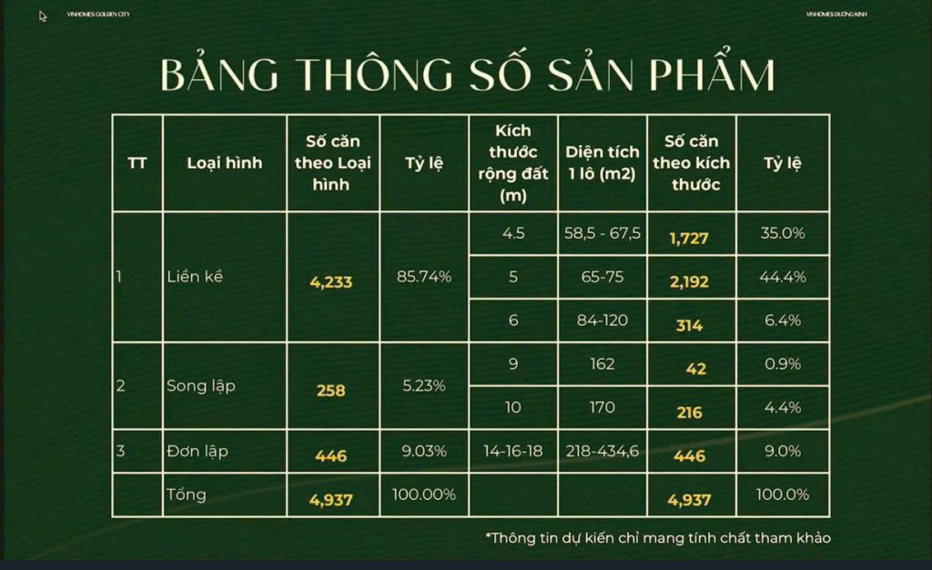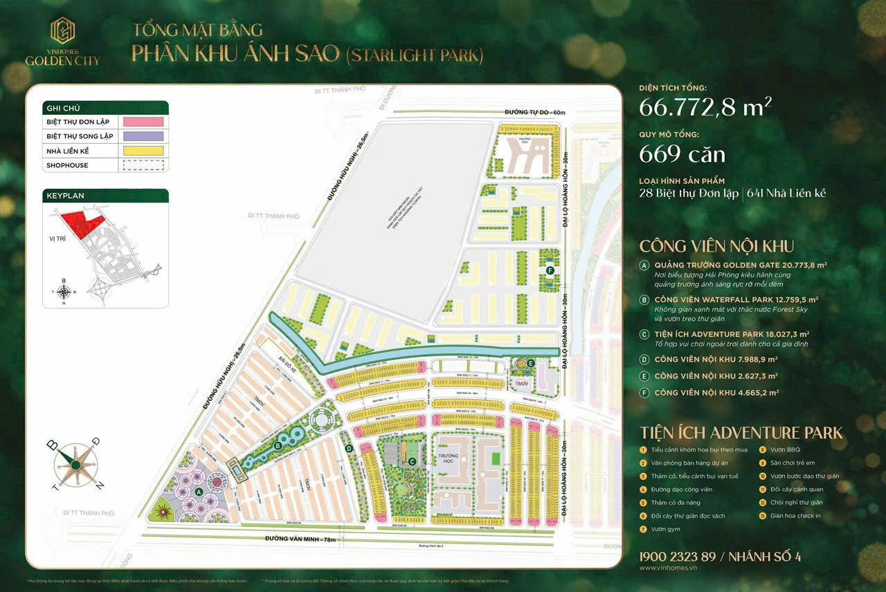 - Số lượng căn: khoảng 669 căn bao gồm 28 căn BT đơn lập và 641 căn liền kề