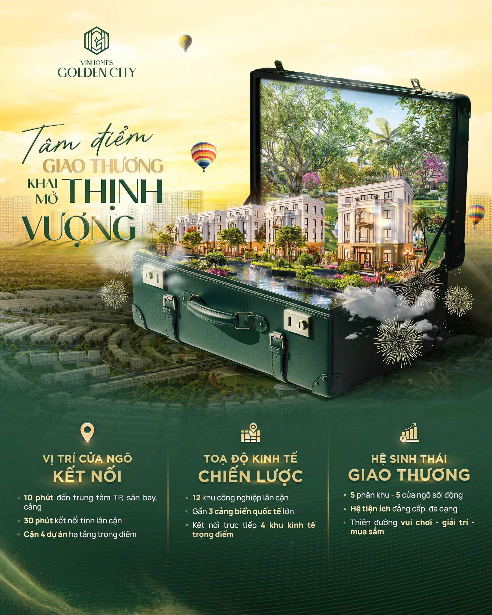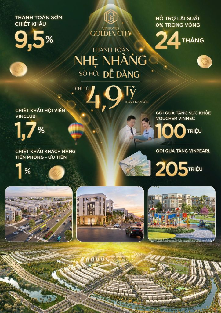 Khu đô thị Vinhomes Golden City – kiến tạo nên một không gian sống tích hợp “all in one” tại TP Hải phòng, Tại đây là sự tiếp nối những thành công của thương hiệu Vinhomes, là điểm dừng an cư lý tưởng cho cư dân, nơi đầu tư sinh lời hiệu quả cho giới địa ốc miền bắc.